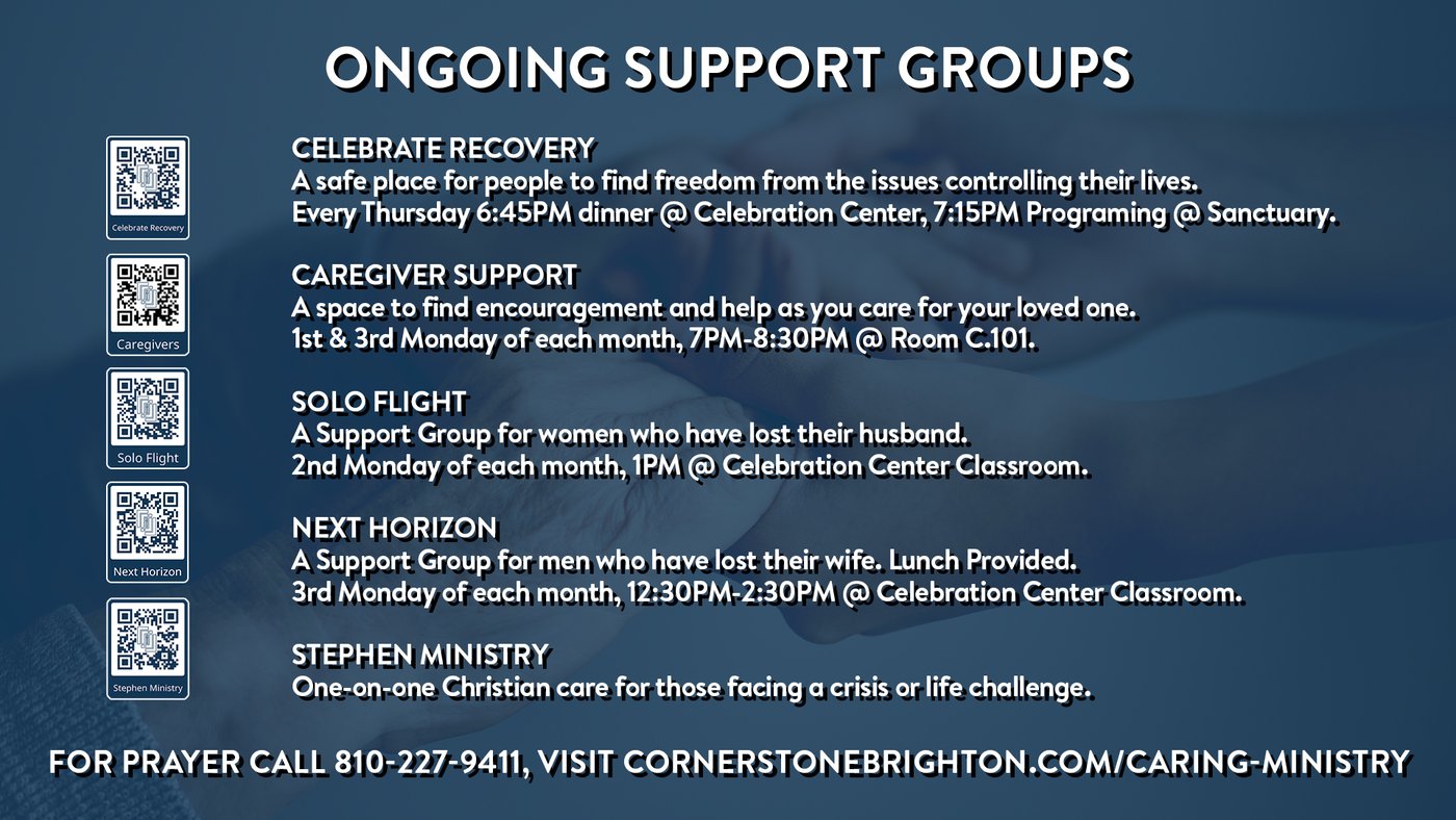 The Body of Christ at Cornerstone is served by a dedicated team of Pastors and Deacons who oversee the ongoing ministry of caring. But they can't do all the caring by themselves. That's much too great a burden to bear! Instead, each member of Cornerstone is urged to be accountable to all the rest, fostering a sense of belonging, being family, and unity in the Spirit.